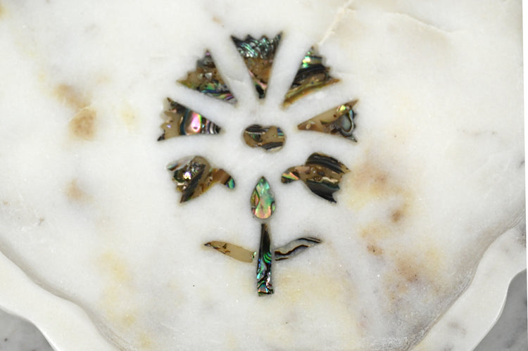 These lotus shaped trays with mother of pearl flower inlay adds a regeal touch to the platters.