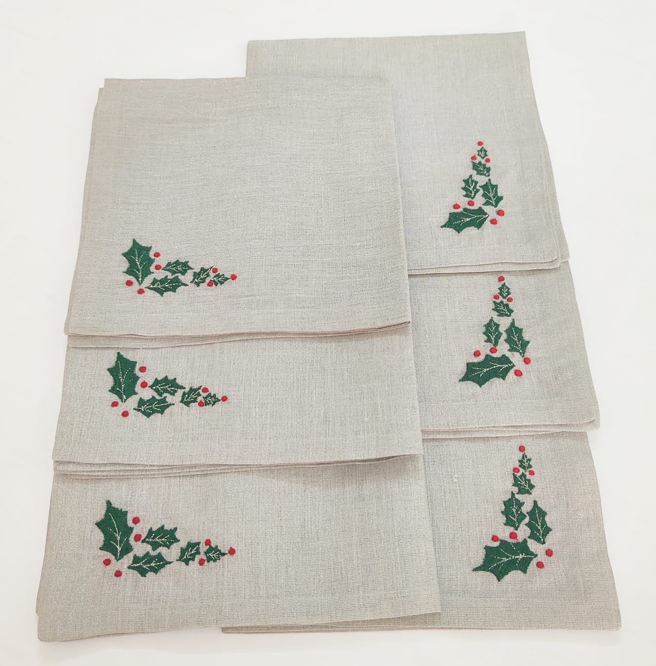 Beautiful silver grey dinner napkin with holly leaf is perfect for a Christmas entertaining!