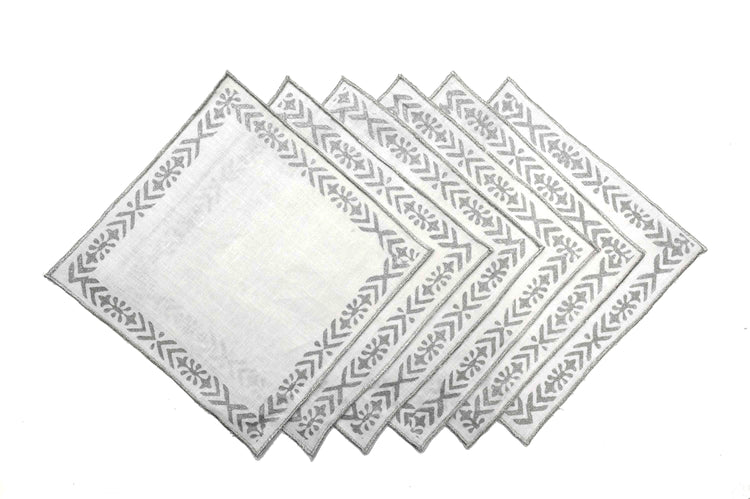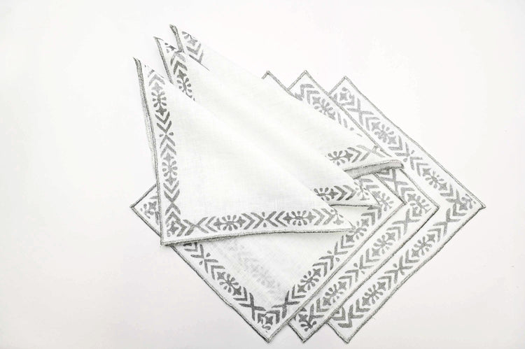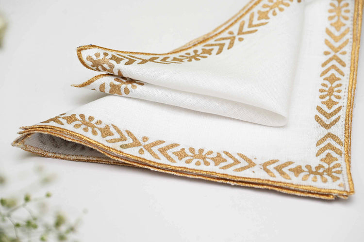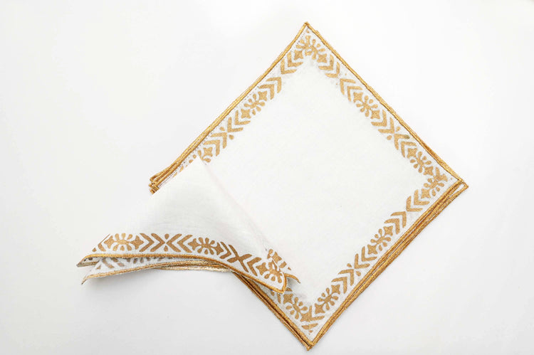 These  gold and silver printed cocktail napkins add shimmer to the table setting.