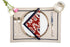 Cream linen placemat with single insert in navy with maroon batik dinner napkin make a perfect trending setting.