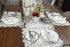 This crisp white linen table runner with radiant silver maple leaf cutwork embroidery definitely adds panache to your dining table !
