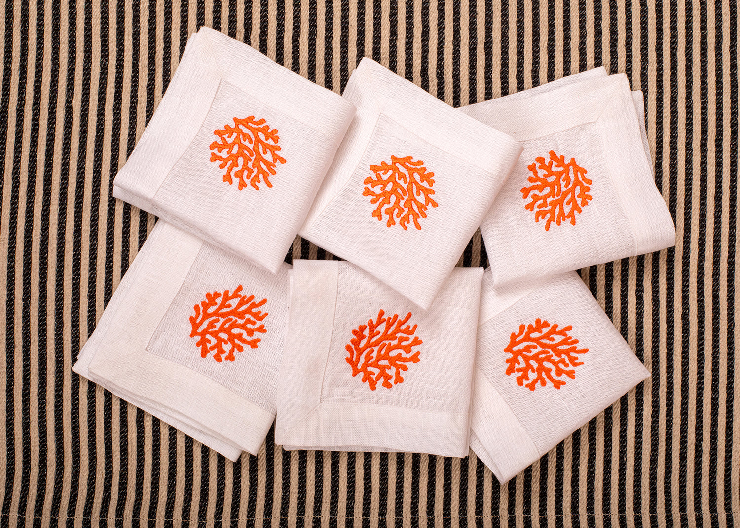 White linen embroidered cocktail napkins make a very pretty cocktail/ high tea setting.