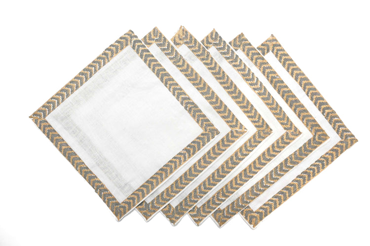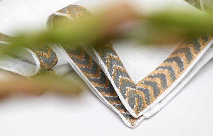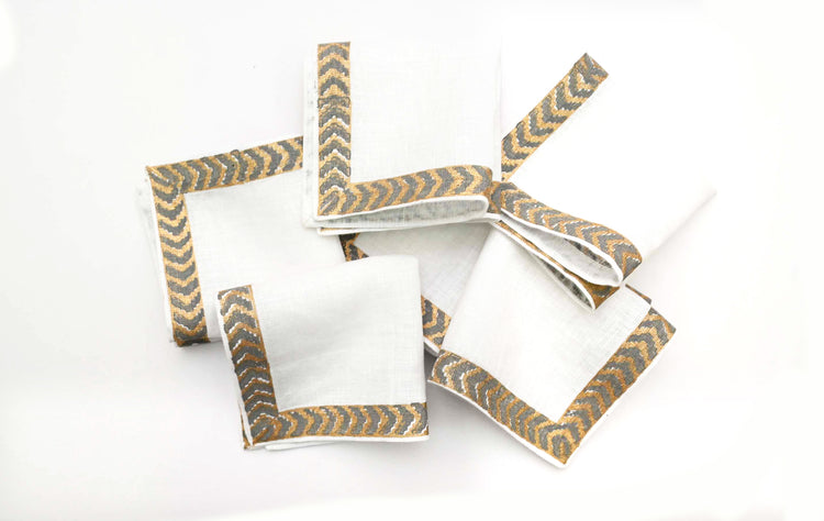 Grey block print linen cocktail napkins.