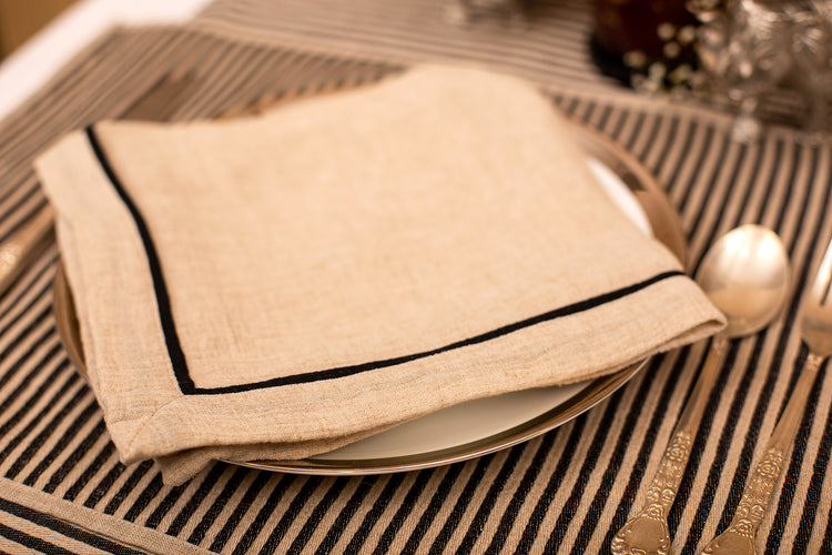 Striped linen placemat and natural linen embroidered napkin add a timeless charm.